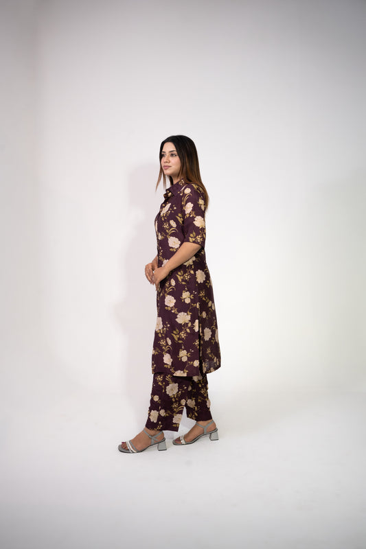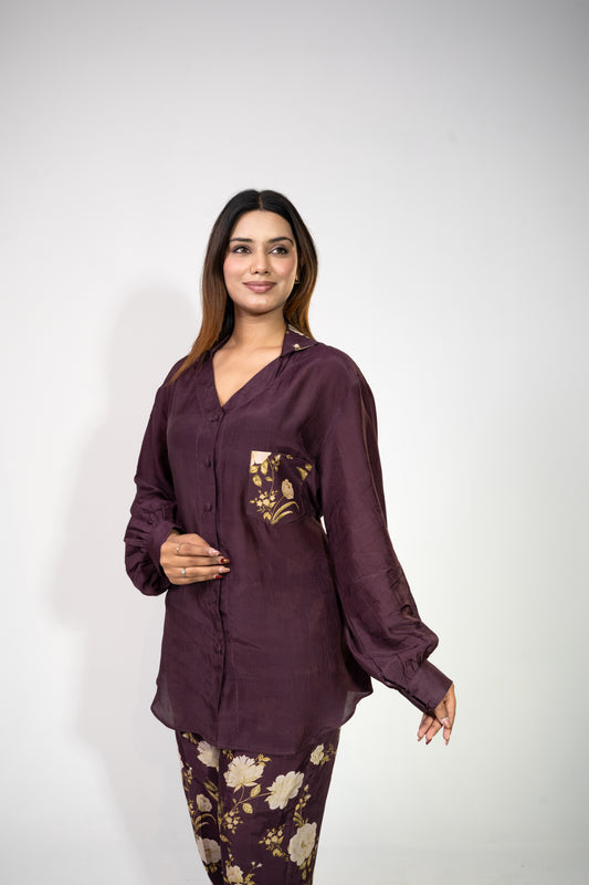 Wine Shirt Co-ord Set