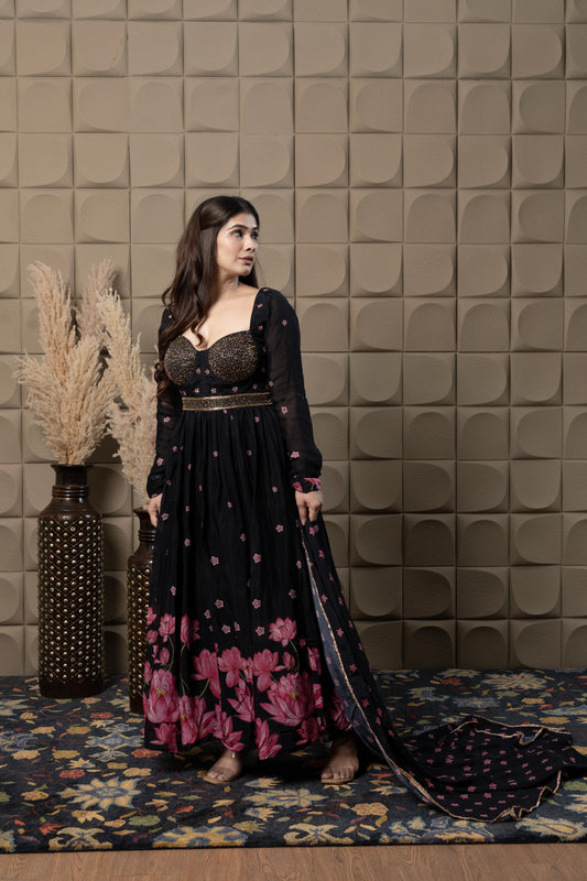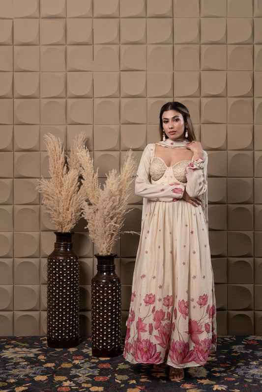 Sapphire Embroidered Bustier With Pleated Lehenga