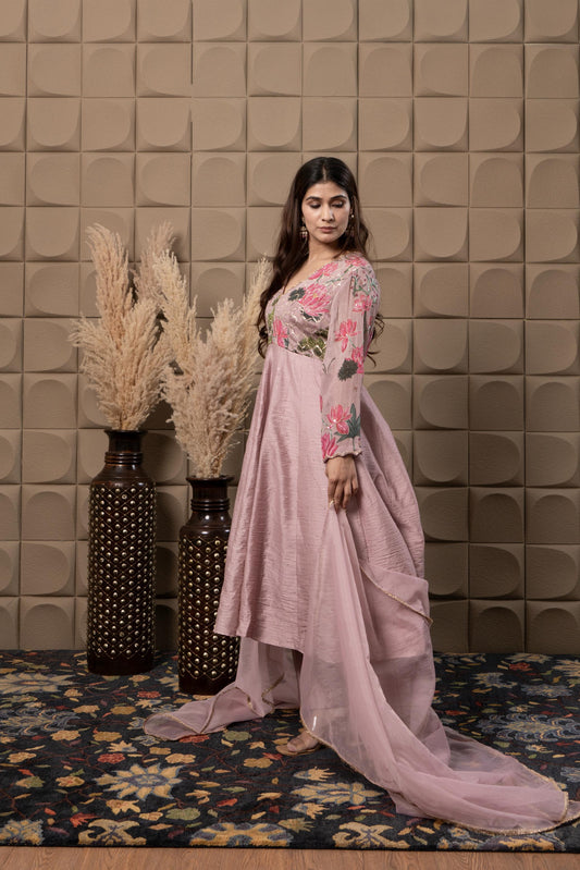 Plum Drape Skirt With Embroidered Bustier & Cape